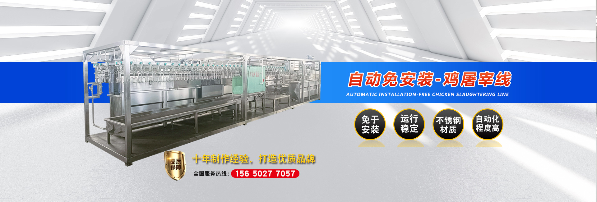 公司長(zhǎng)期與國(guó)內(nèi)外屠宰加工企業(yè)合作,走引進(jìn)——消化——?jiǎng)?chuàng)新和自主研發(fā)相結(jié)合的道路,在國(guó)內(nèi)外同類產(chǎn)品的基礎(chǔ)上,不斷更新和改造。公司主要設(shè)備有:A字型立式脫毛機(jī)、臥式脫毛機(jī)、強(qiáng)力噴淋機(jī)、松毛機(jī)、浸燙池、螺旋預(yù)冷機(jī)、禽籠清洗機(jī)、電暈機(jī)、兔扯皮機(jī)、兔割前爪/后爪機(jī)、剝胗機(jī)、自動(dòng)洗鉤機(jī)、螺旋燙爪機(jī)、雞爪脫皮機(jī)、分割輸送帶等屠宰用設(shè)備。其中,公司獨(dú)力發(fā)明生產(chǎn)設(shè)計(jì)的“電動(dòng)調(diào)節(jié)脫毛機(jī)”及“自動(dòng)控水控溫浸燙池”順利通過(guò)知識(shí)產(chǎn)權(quán)局的實(shí)質(zhì)性審查。公司所生產(chǎn)的設(shè)備 可與國(guó)外同類產(chǎn)品配套使用,設(shè)備遠(yuǎn)銷阿爾及利亞、澳大利亞等中東、非州等并建立了長(zhǎng)期穩(wěn)定的合作關(guān)系。
